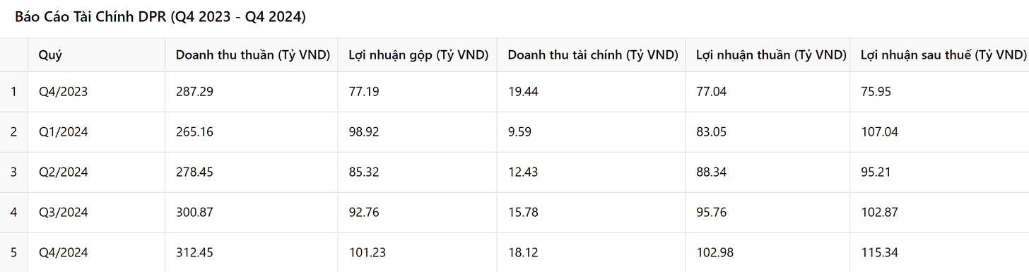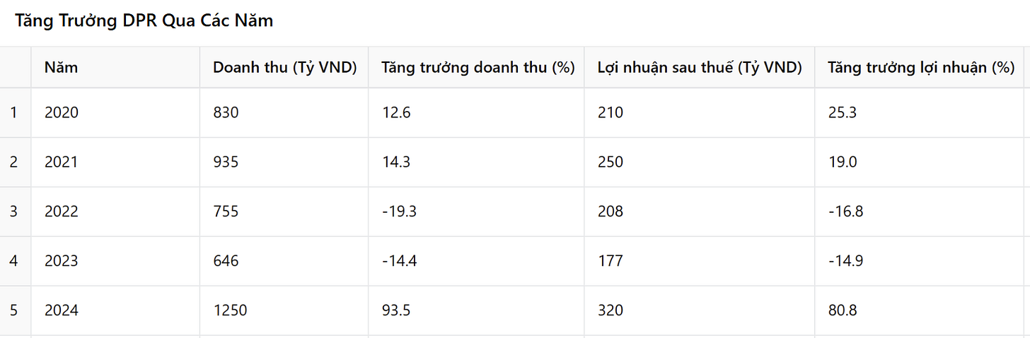Doanh thu từ KCN có biên lợi nhuận cực cao (~50-70%), giúp DPR giữ vững tăng trưởng.